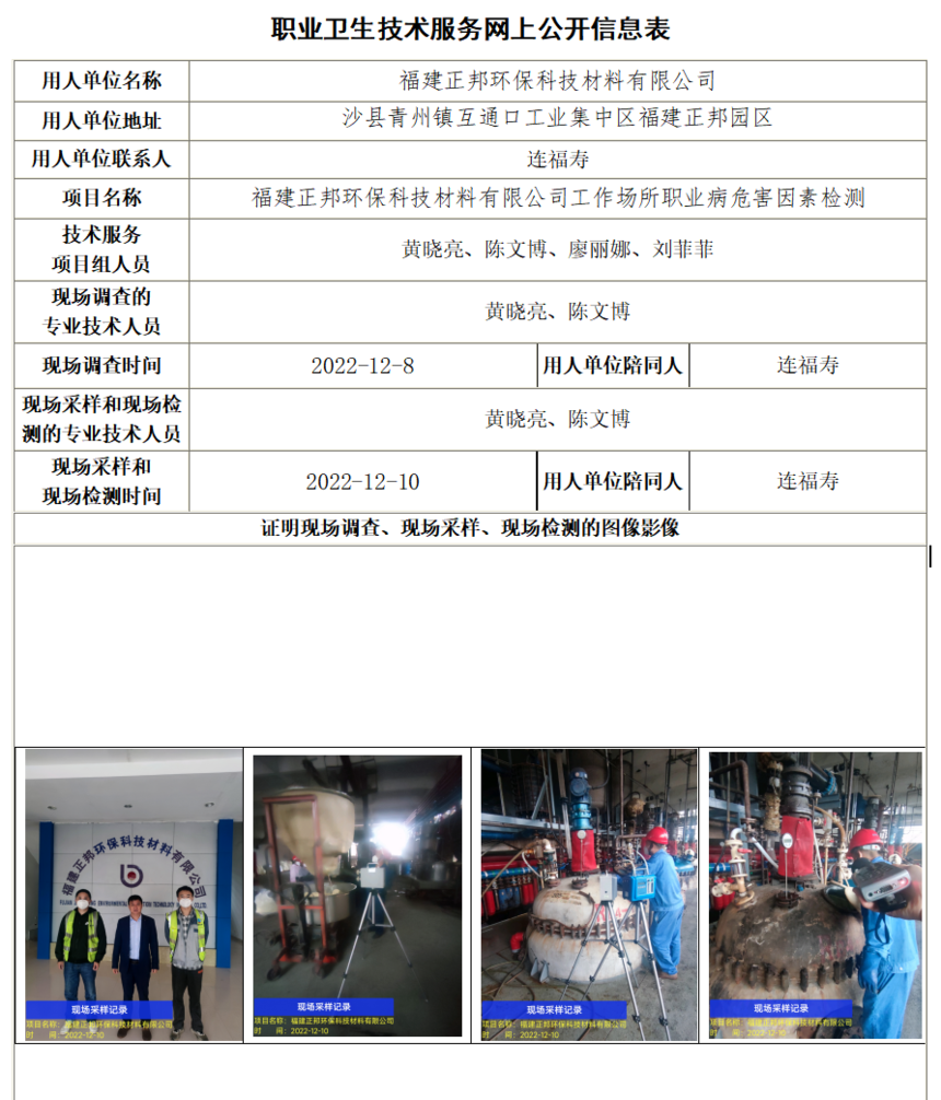 福建正邦環(huán)?萍疾牧嫌邢薰竟ぷ鲌鏊殬I(yè)病危害因素檢測