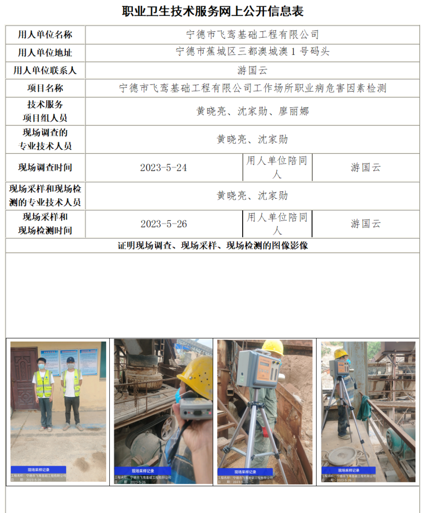 寧德市飛鸞基礎(chǔ)工程有限公司工作場(chǎng)所職業(yè)病危害因素檢測(cè)